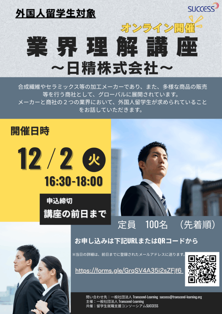 【対 象】留学生就職支援コンソーシアムSUCCESS会員大学の外国人留学生