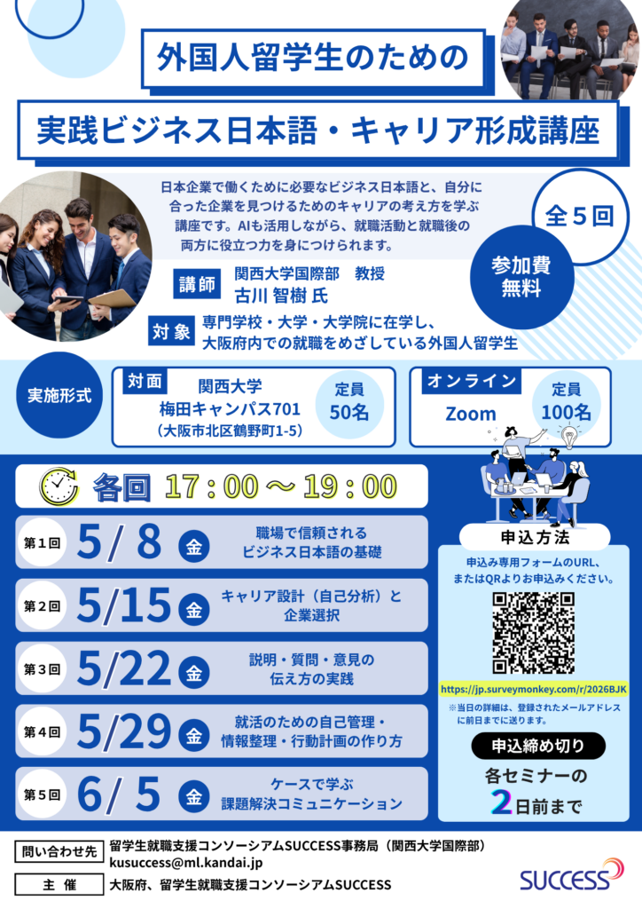 日本企業で働くために必要なビジネス日本語と、キャリアデザインの講座です。