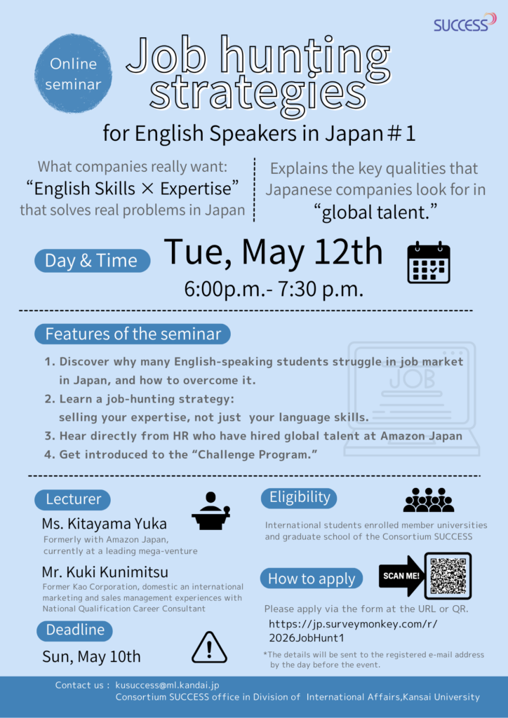 【Eligibility Person】 International students enrolled member universities and graduate school of the Consortium SUCCESS