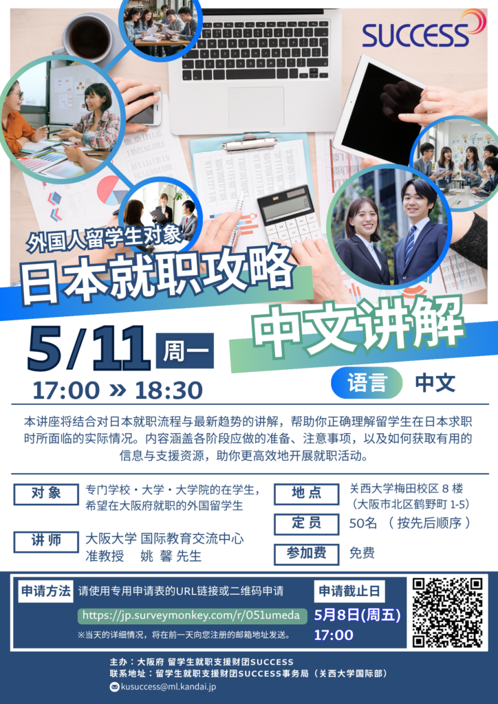 本讲座将结合对日本就职流程与最新趋势的讲解,帮助你正确理解留学生在日本求职时所面临的实际情况。内容涵盖各阶段应做的准备、注意事项,以及如何获取有用的信息与支援资源,助你更高效地开展就职活动。